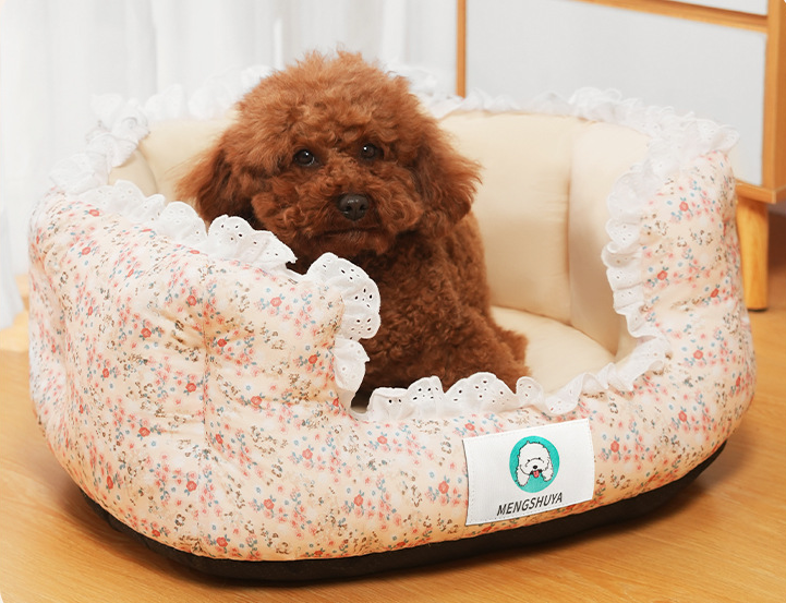 Nid d'animal de compagnie à motif floral et bordure en dentelle pour chats et chiens en toutes saisons
