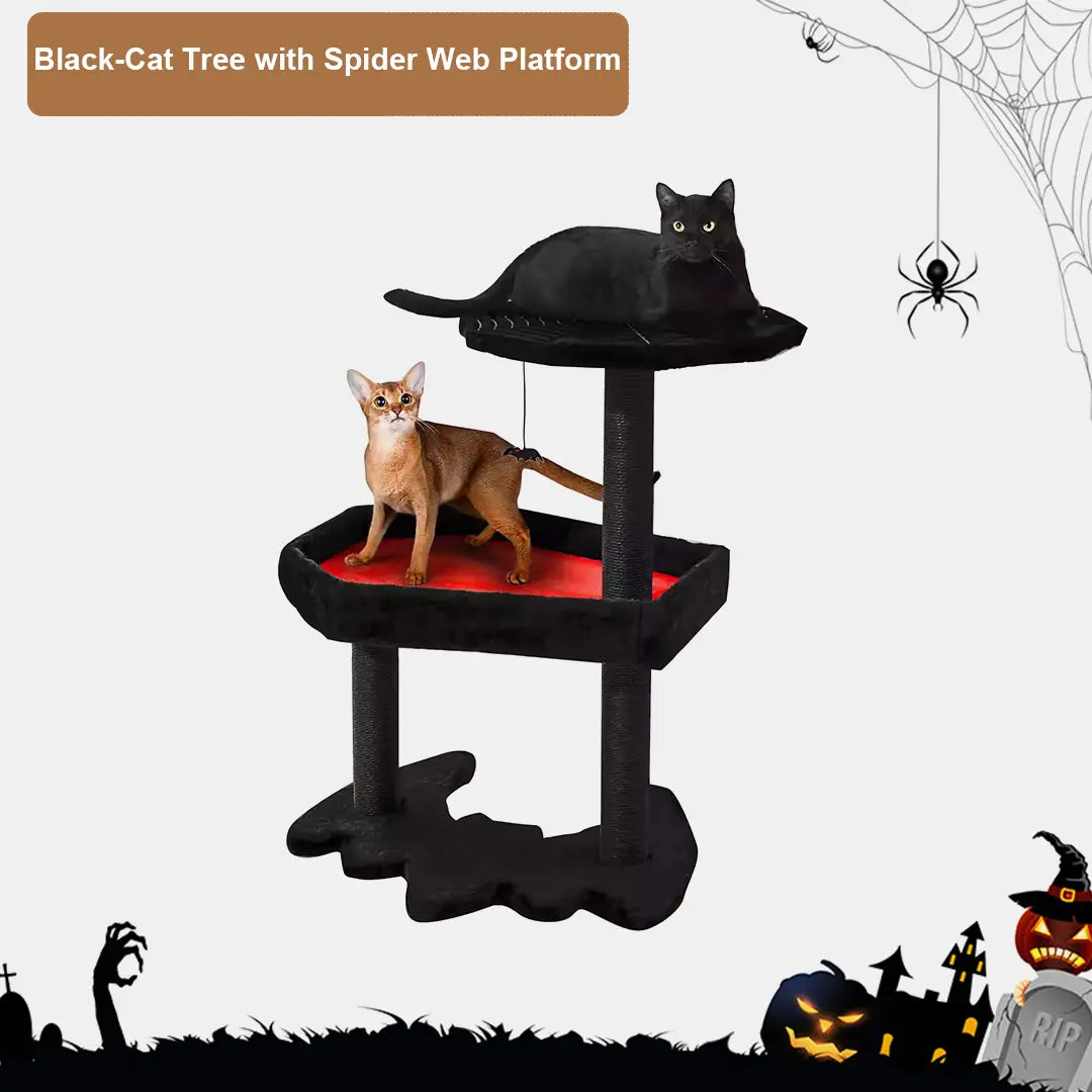 Gothic Halloween Cat Tree with Bat & Spider Web Platforms
