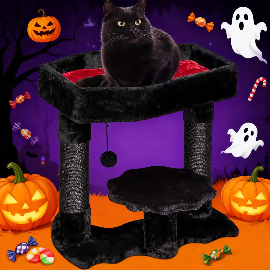 Not just a seasonal decoration, this piece doubles as a functional cat tree, offering your pet a stylish resting spot year-round. From playful climbing to curling up in the coffin-shaped cat bed, it keeps your cat engaged and cozy.