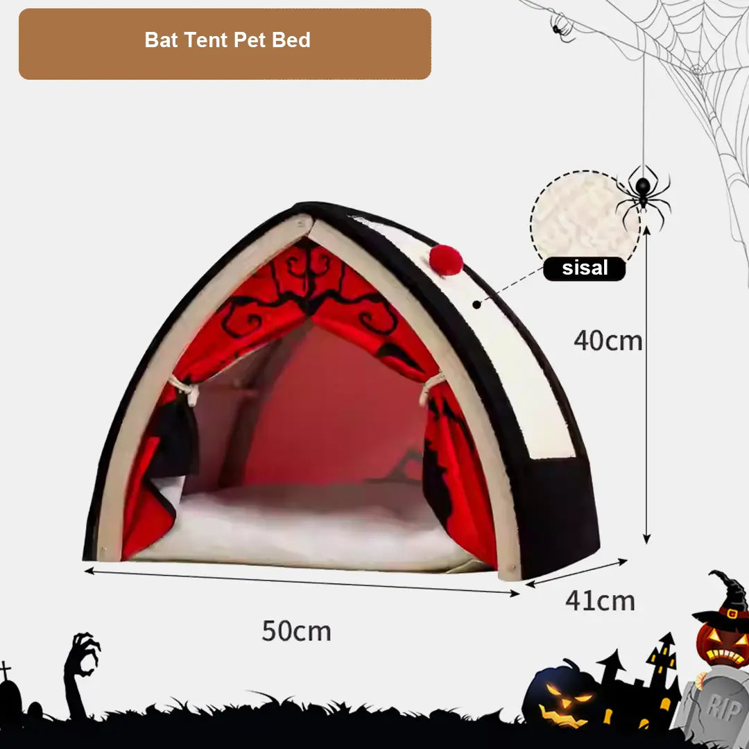🦇 Halloween Bat Cat Tent Bed – Foldable Hideout with Sisal Scratching Top